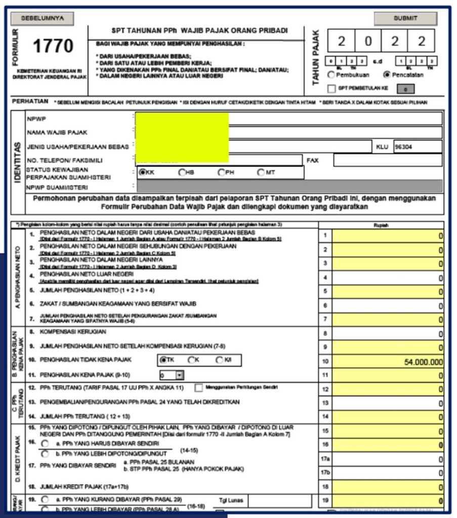 2. Mengisi e-Form SPT Tahunan 1770