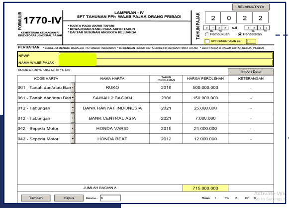 - Masukkan data harta dan utang per 31 Desember 2024