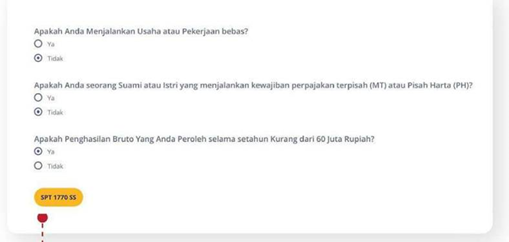 SPT 1770SS adalah jenis laporan pajak tahunan yang diperuntukkan bagi Wajib Pajak Orang Pribadi (WP OP) dengan kriteria sebagai berikut: