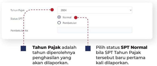 • Status SPT: Pilih SPT Normal jika ini adalah pelaporan pertama, atau Pembetulan jika ada koreksi dari laporan sebelumnya.
