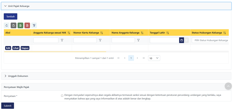 - Pastikan nama istri/anak tercantum. Jika belum, tambahkan secara manual dengan klik tambah